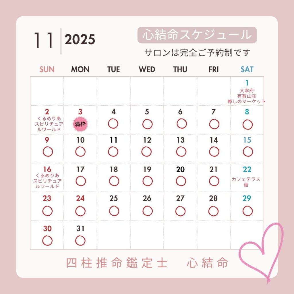 2025年11月の鑑定スケジュールをお知らせいたします。