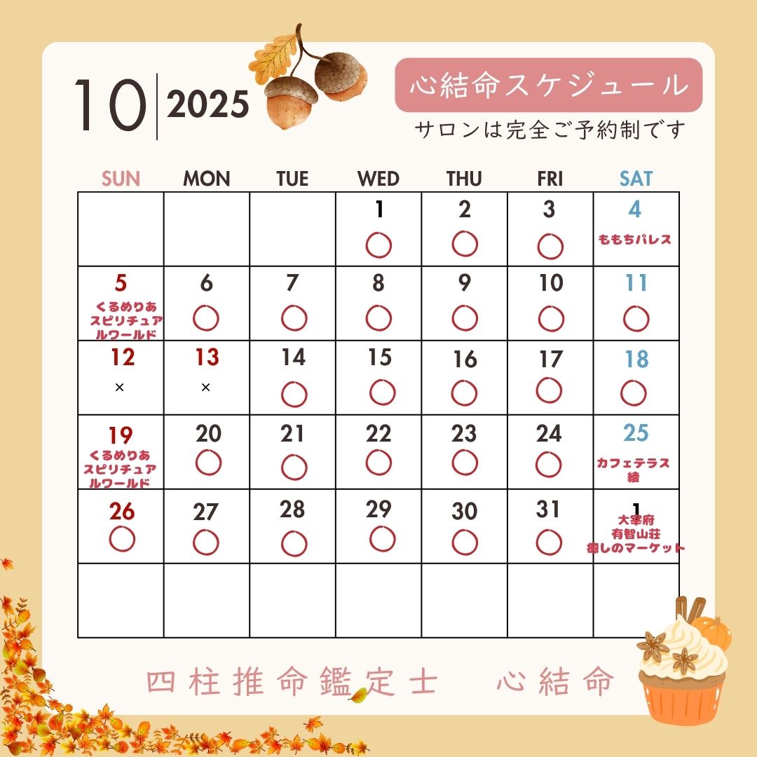 2025年10月の鑑定スケジュール|個人鑑定・イベント・四柱推命講座